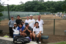 | なぜか女性メンバーは元気 女子ダブルスをまじめにやってました。 Jinちゃんは2日目より参加、ご夫婦で 信じられないハード練習をしていました。 |