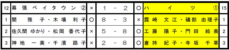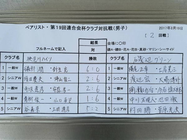 磯辺真砂地区テニス連合会男子クラブ対抗戦 2回戦1−3 女子3部 準優勝 準決勝 2回戦 1回戦 男子7部