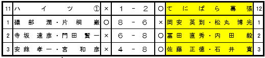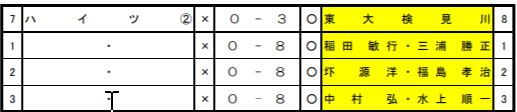 | 3回戦 | ハイツ | 1 | 3 | 真砂 |